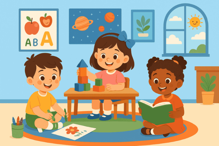 Balvatika aims at children between 3 and 6 years old. It is the transition period between home and school. The program emphasizes the development of children’s natural curiosity, creativity, social skills, and basic literacy through play and interaction.